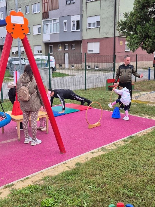U poslijepodnevnim satima na vrtićkom dvorištu okupili su se roditelji i djeca na sportskim igrama ,,U potrazi za sportom“. Na zabavan i kreativan način roditelji i djeca odradili su niz motoričkih zadataka kako bi na kraju složili sportsku slagalicu.