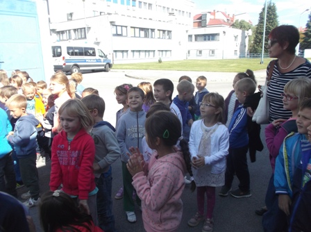 U povodu Dana policije već tradicionalno naše su starije odgojne skupine i njihove odgajateljice ugostili djelatnici PU Bjelovar. Naš domaćin bio je Goran, policajac našeg kvarta. Proveli smo ugodnih i zanimljivih sat vremena razgledajući dvoranu za treninge u kojoj vježbaju naši policajci kako bi bili snažni i spretni u obavljanju svojih odgovornih zadataka. Razgledali smo njihovu opremu i vozni park, a upoznali smo i policijskog psa tragača.Sve smo ovjekovječili mnoštvom zajedničkih fotografija i s domaćinima se oprostili uz slatkiše i prigodne edukativne crtiće „Djeca u prometu“.Našem kvartovskom policajcu poklonili smo veliki plakat „Policajac-moj prijatelj“,kojeg smo za tu prigodu izradili.Veliko hvala na lijepo organiziranoj i nadasve edukativnoj i zanimljivoj posjeti i druženju!